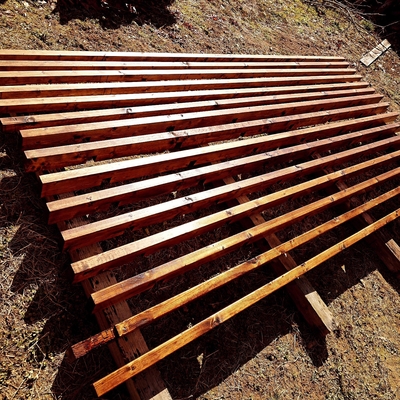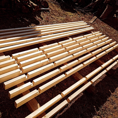 工事の刻みは続きます。まずは約3m×3mの自作小屋正面上となる屋根から。