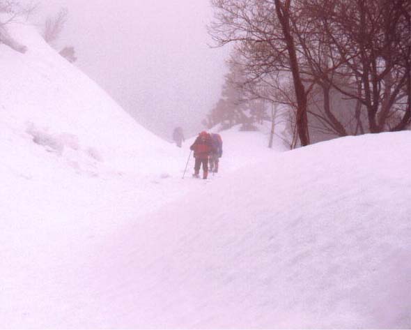 吹き溜まりでの積雪は、かるく2メートルを超している。
