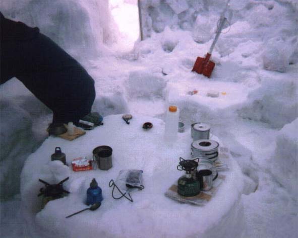 ガスコンロや酒入りの水筒が、きっちりとシステムキッチン化されているのが判るだろうか・・・