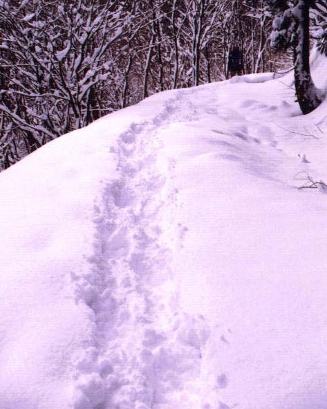 来たときに比べ、新たな積雪のため少々のラッセルが必要となった。