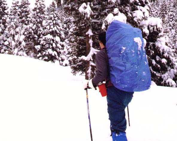 深雪の中、上着を脱ぎ峠を目指す。