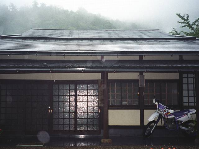 雨の残る中、再び軒下で荷造りをした