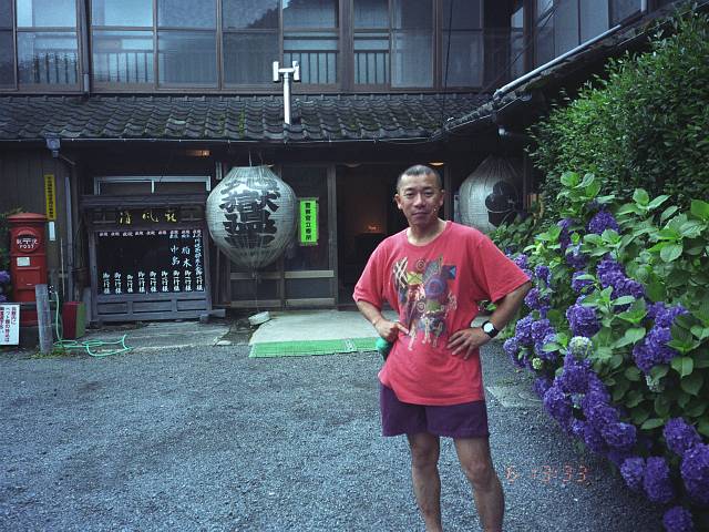 地獄温泉 「清風荘」 に着いた! どうやら一番のようだ。 内湯で汗を流した後、玄関先で