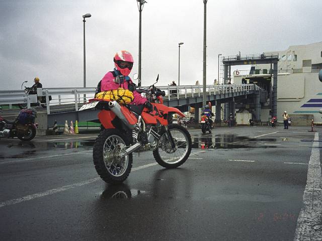 さぁ! 秋田に上陸。 路面が濡れているのでカッパの下のみ着用