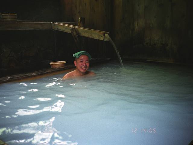 まだ2人しかいない。 まずは 「鶴の湯」 の 「白湯」 へ。 白い