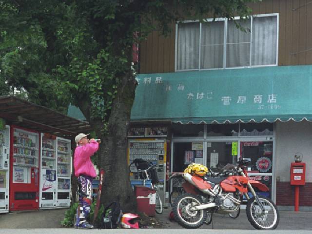 遠くに 「鳥海山」 を眺めながら下って休憩