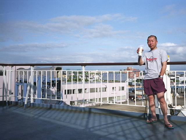 ホッとしてデッキでビール。 新潟港を後にする