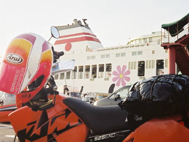 六甲アイランド内、阪九フェリー乗り場に到着。 乗船前に満タンを忘れない。
